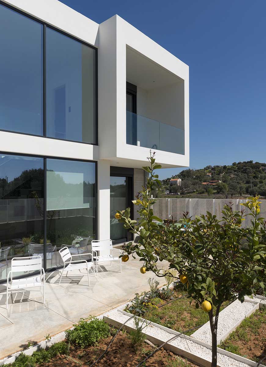 A house of 250m2 for a young family in an almost rural area part of Athens, Paiania, was designed in a plot of 500m2. As the first house that was going to be built in this new suburb, but not the last we had to consider future developments but start from an almost white paper. Nevertheless due to crisis new developments are not due to appear any time soon.