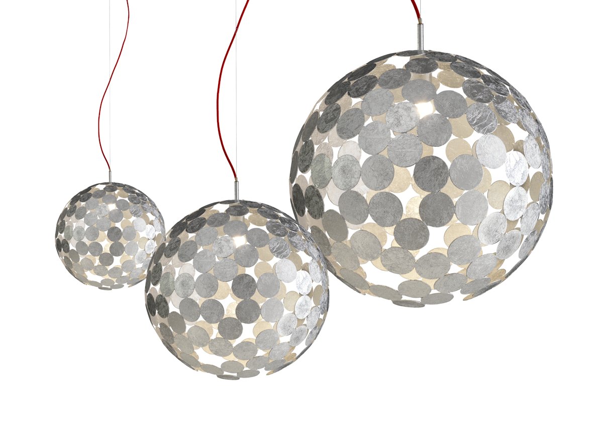 Divisual have designed the Planet-O Lamp, made from metal discs welded by hand.