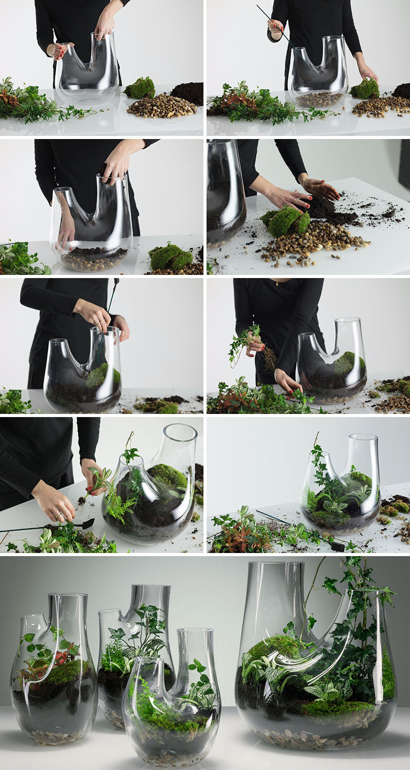 Due to the design of the vase, it can also double as a modern terrarium, and a micro ecosystem can be created within it. You can find further instructions on how to create your own – here.