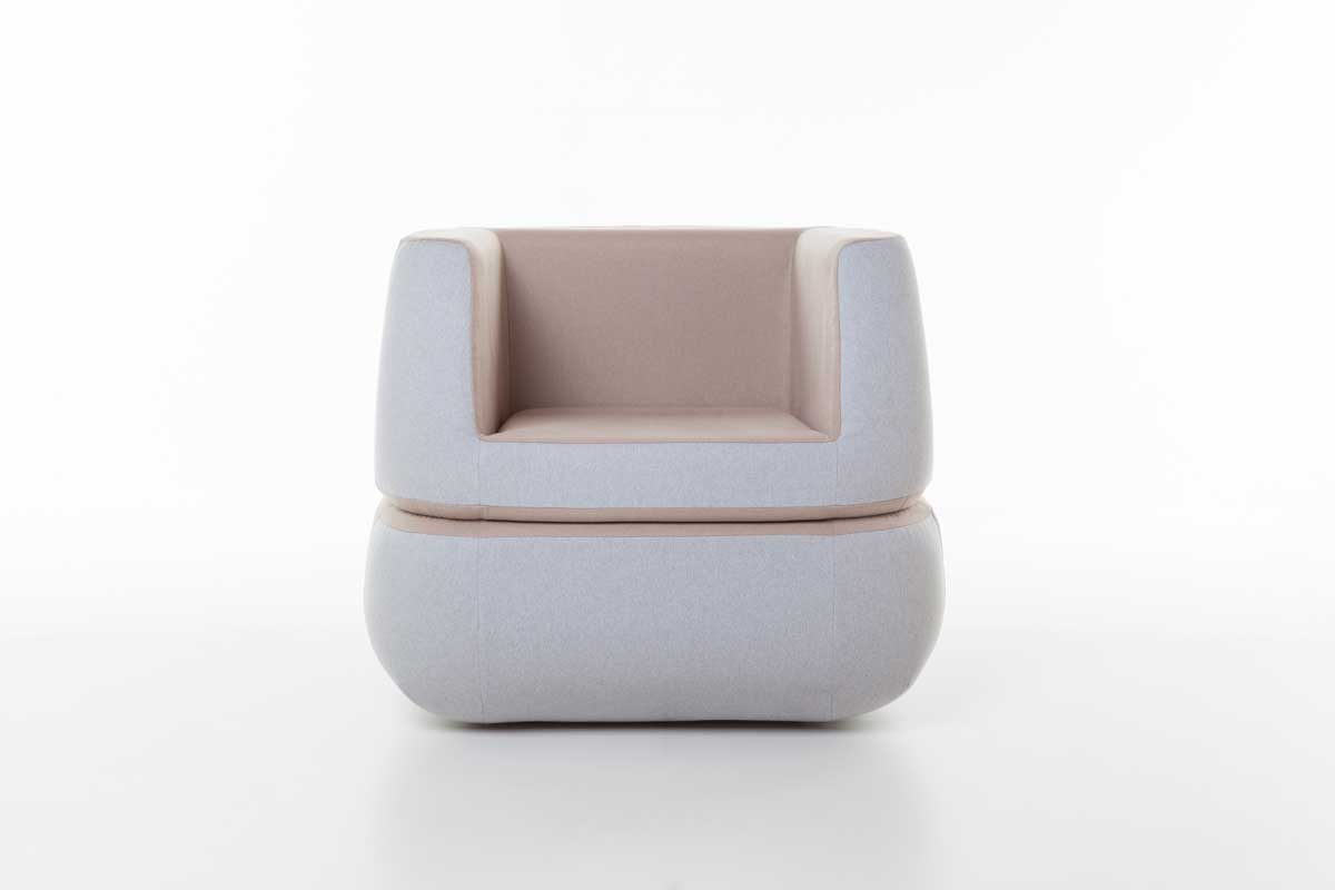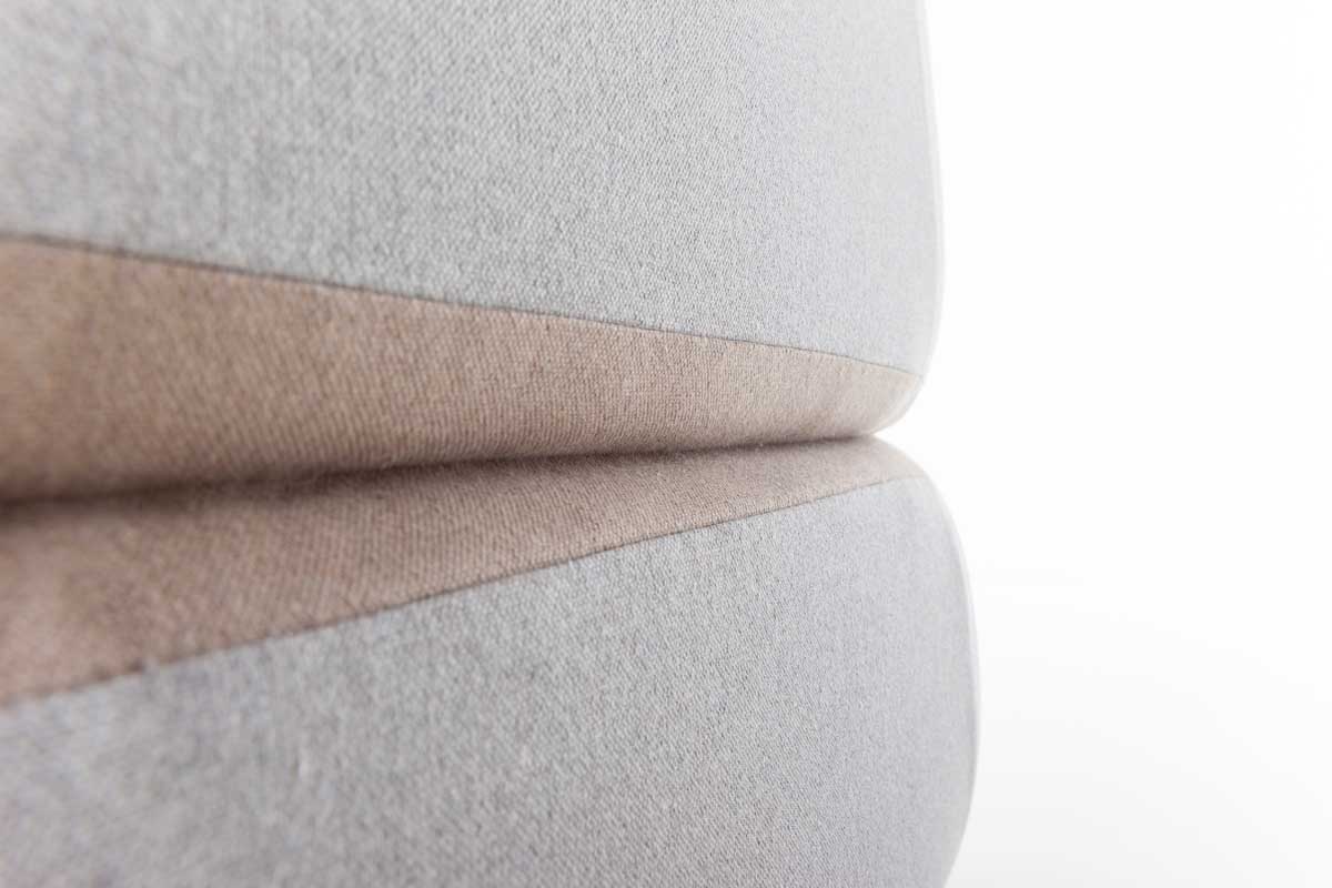 A two-coloured furniture piece with functional features and eco design traits: the seat and the outer fabric are available in different combinations, all made of 100% recycled cotton fabric.