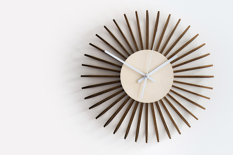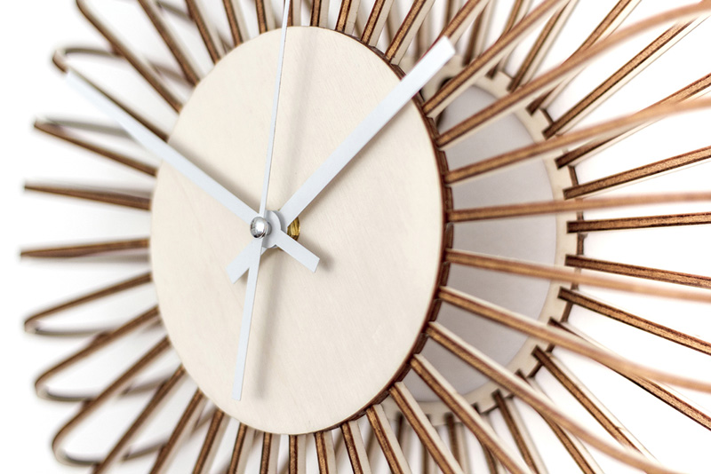 Slovenian design studio GorjupDesign have created Puff, a duo of wall clocks that are each made from 35 wooden parts.