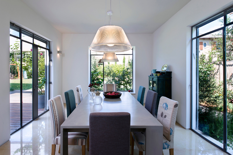 The house in Raanana was designed for a large family of four children and two parents. The brief was somewhat formal and unconventional.