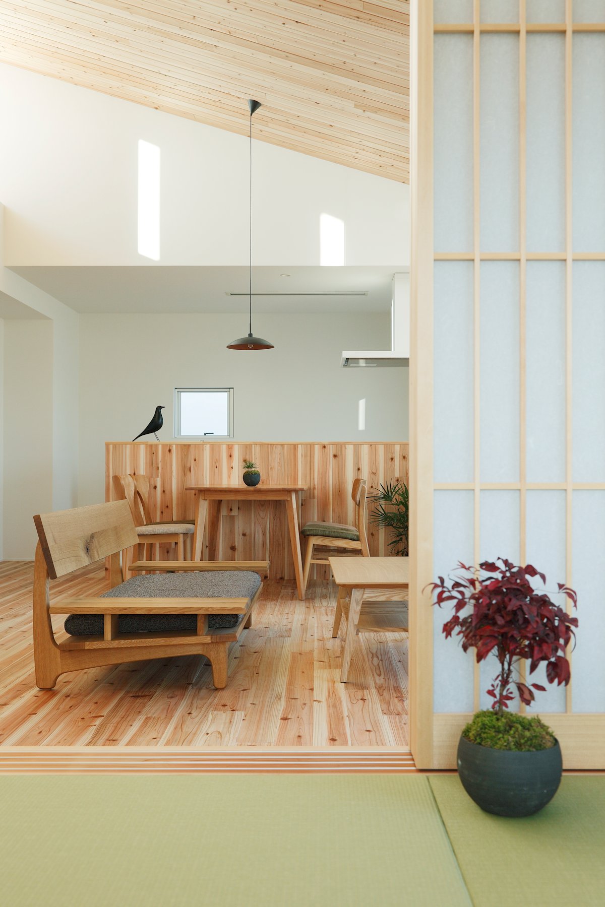 In addition, we pull into the house light and to have a spread in space by connecting the space between a large roof, was equally all year round by the north window with depth. A result, the opening in the depth this bright and large roof, family ties to each other also makes connecting connects the sky and interior space.