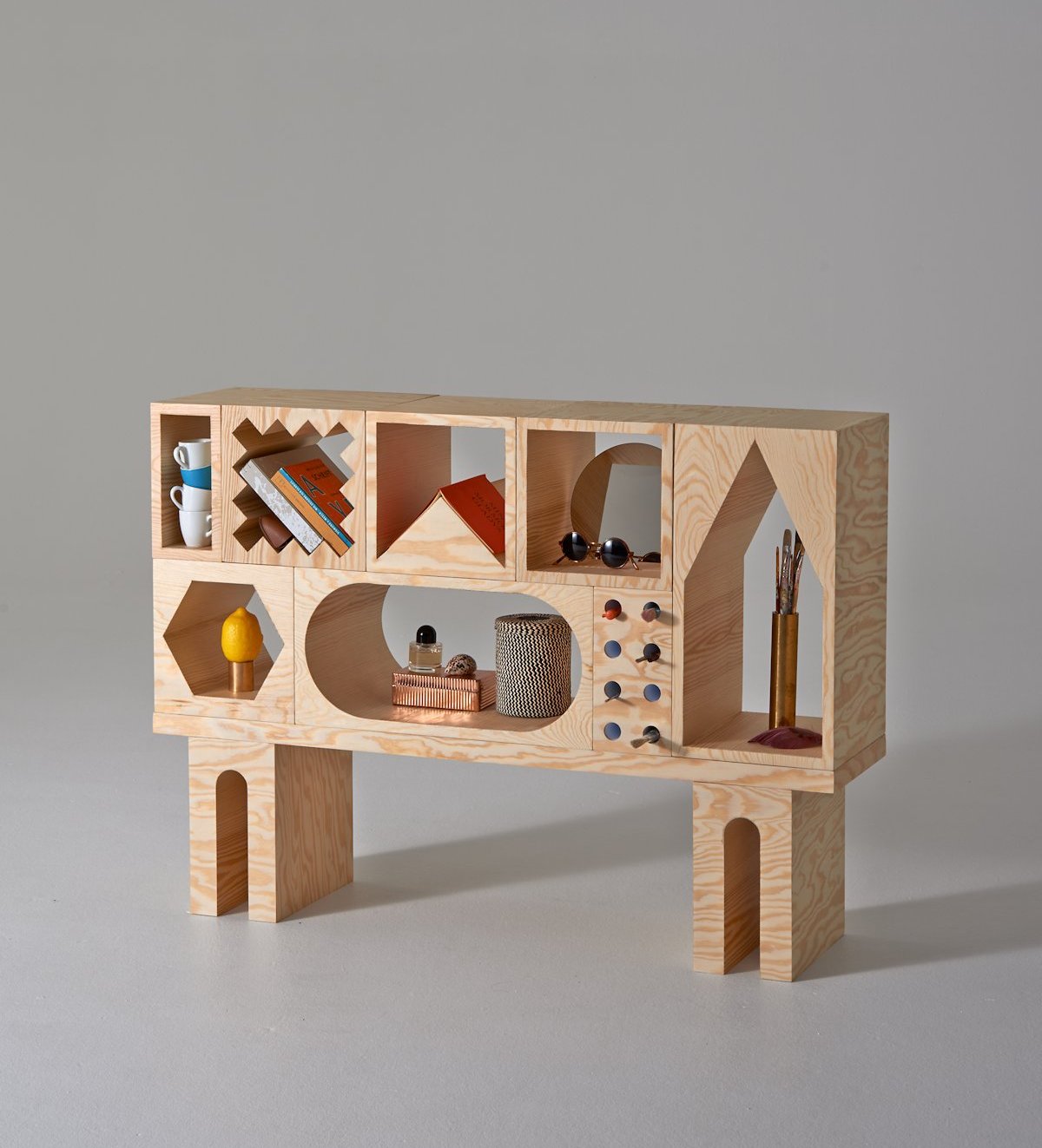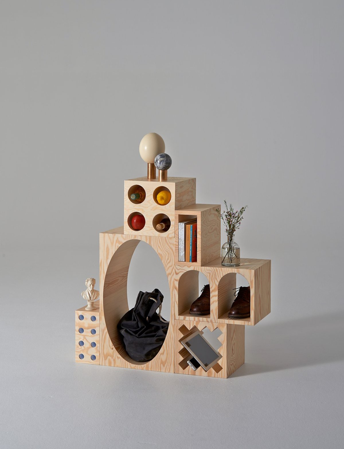 ROOM enhances the characteristic of the individual objects and emphasizes the interactions between space and object. ROOM is made in plywood and finished with a matt lacquer.