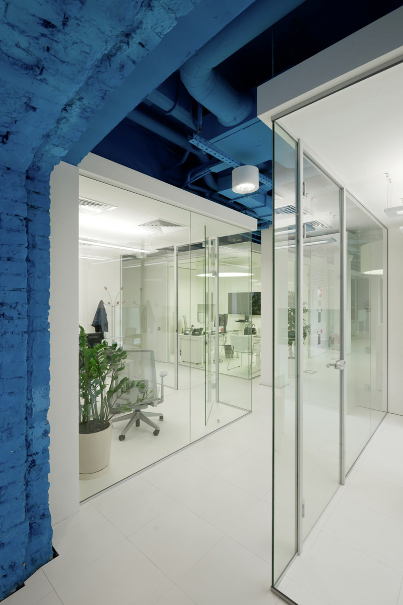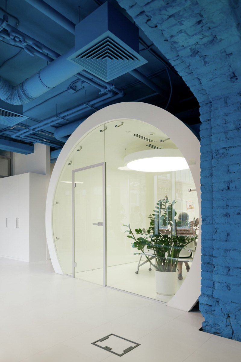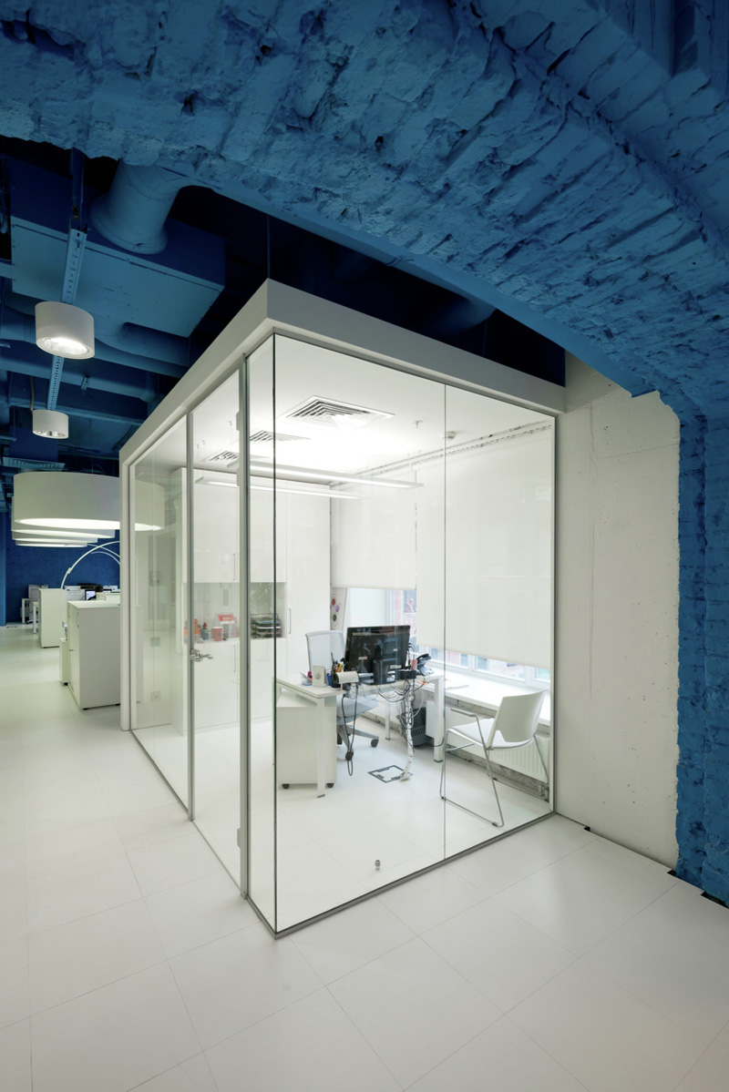 Saturated Blue Surrounds Bright Whites In This Media Agency’s Office