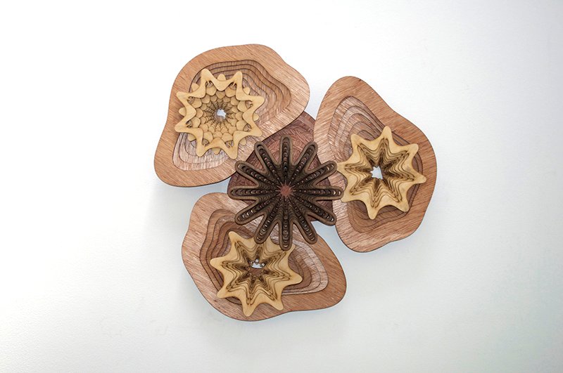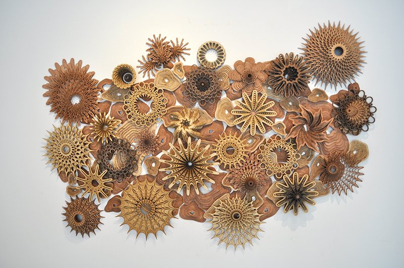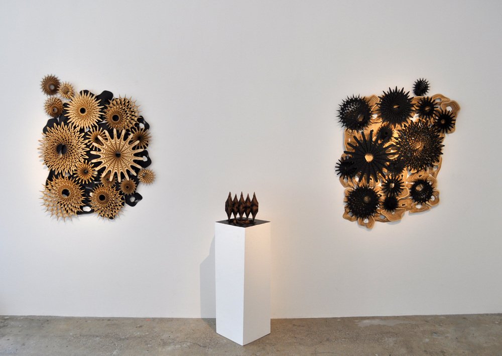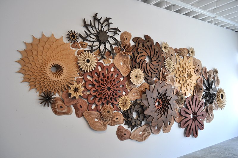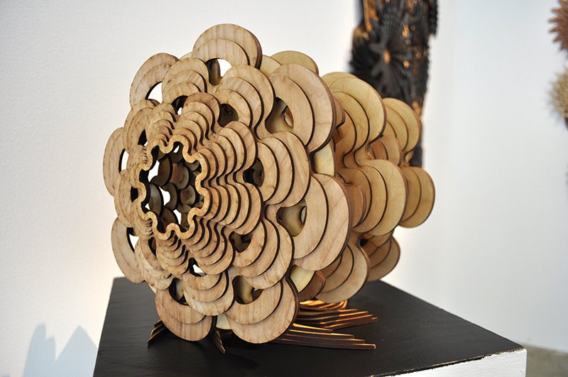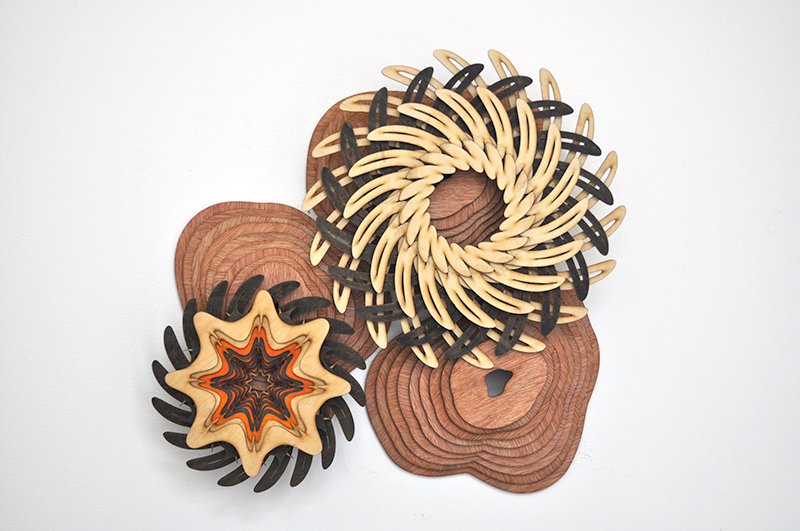 Artist Joshua Abarbanel has created See Life, a selection of wooden art/sculptural pieces that are currently on display at the Hinge Parallel Gallery in Culver City, California.