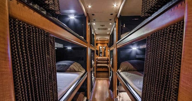 The inside of the truck has been fitted out with private bunk style pods, that have a privacy screen, personal power outlets, a reading light, WiFi, and fresh sheets.