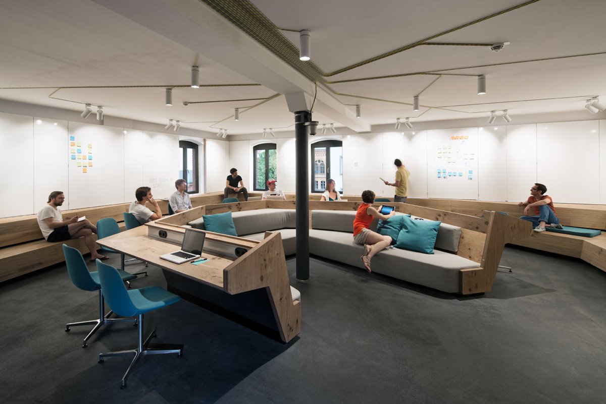 The new headquarters of internationally renowned online platform SoundCloud cover three levels and approx. 4,000 square metres of an old brewery building close to the former Berlin Wall. The complex, designed to serve as a future incubator for up-and-coming start-ups, will become the one-stop office for all 180 Berlin employees of the foremost hub for musical exchange on the net. Anticipating future expansion of the rapidly growing SoundCloud platform, the spacious offices could potentially accommodate up to 350 desks.