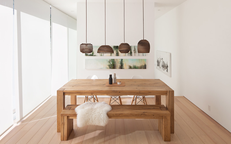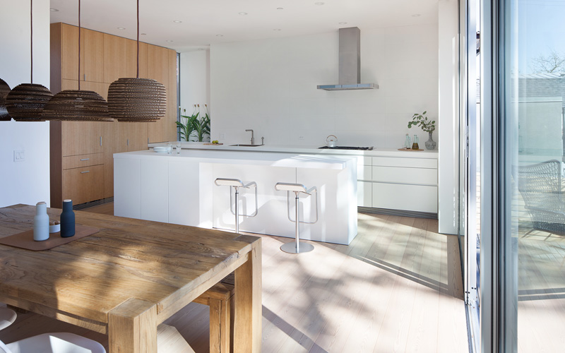 A simple interior palette of materials and white walls allow for dynamic plays of light and shadow throughout the day- continual sources of inspiration and comfort for the client.