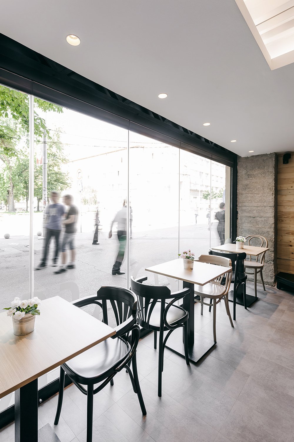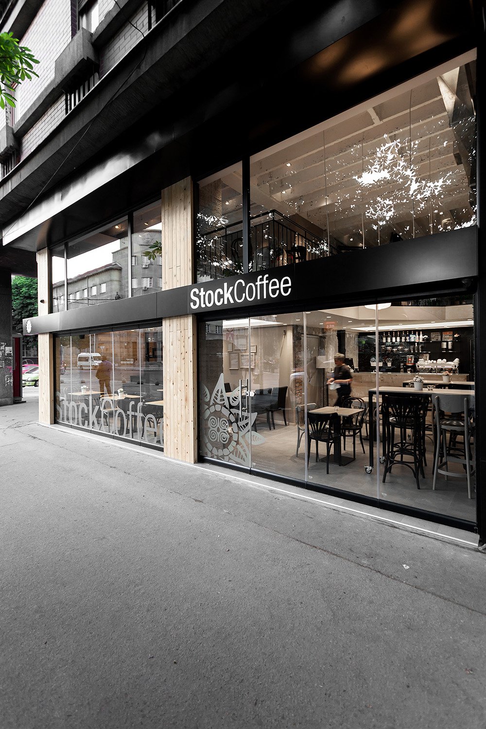 Arhitektura Budjevac, an architectural design studio based in Serbia, had the task to create a fresh looking coffee shop, the first one of the future ‘Stock Coffee’ franchise. In order to transform a former retail space into a coffee shop, we had to remove all unnecessary elements of the interior, expose its concrete ceiling, walls, beams and columns.