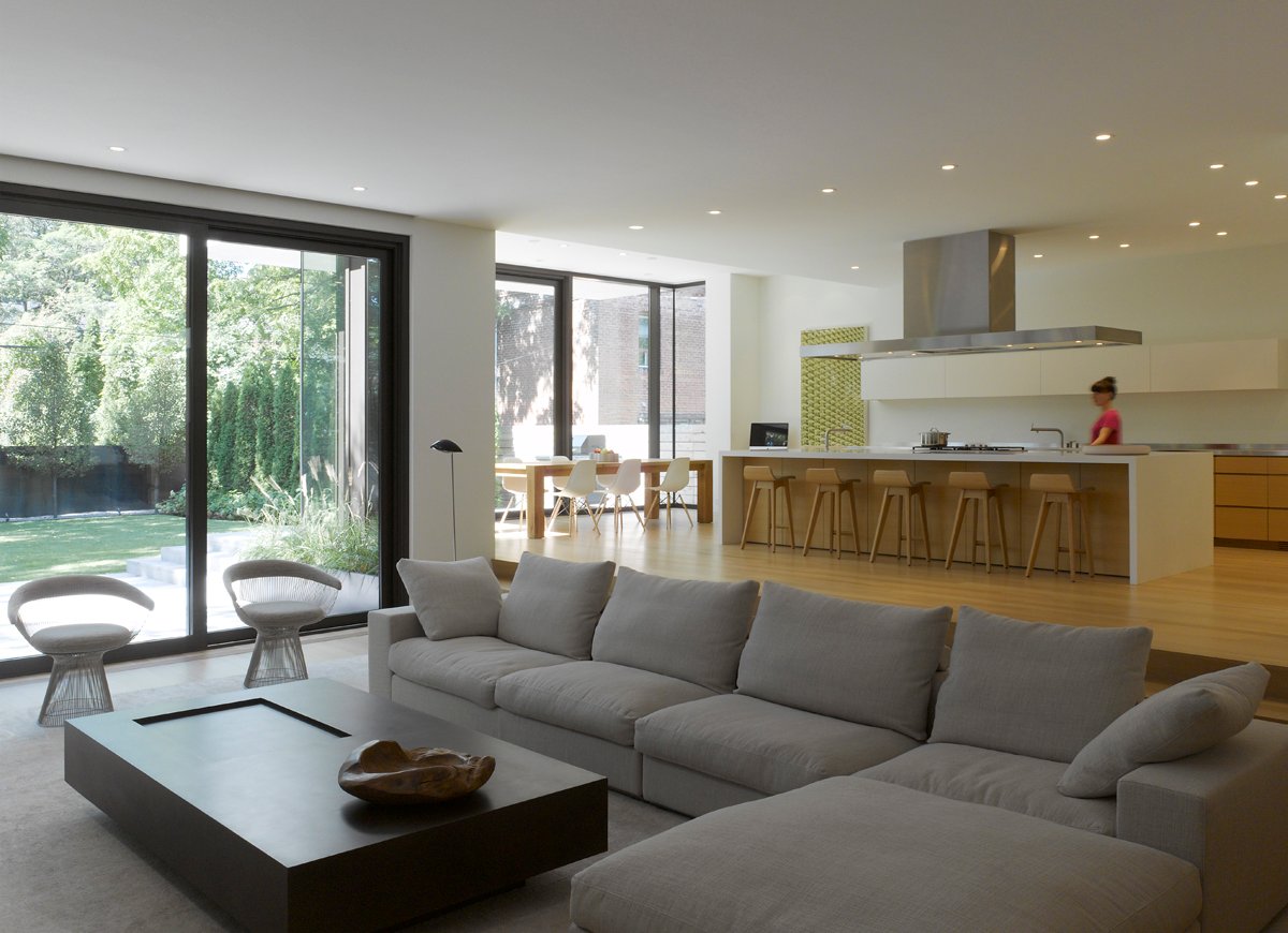 Situated on a long, narrow lot in the south hill area of Toronto, this house was thoughtfully designed for its quiet integration to the surrounding neighbourhood. While the house appears modest in scale from the street view, it opens upon entry to 7000 square feet of interior living space for a family of five.
