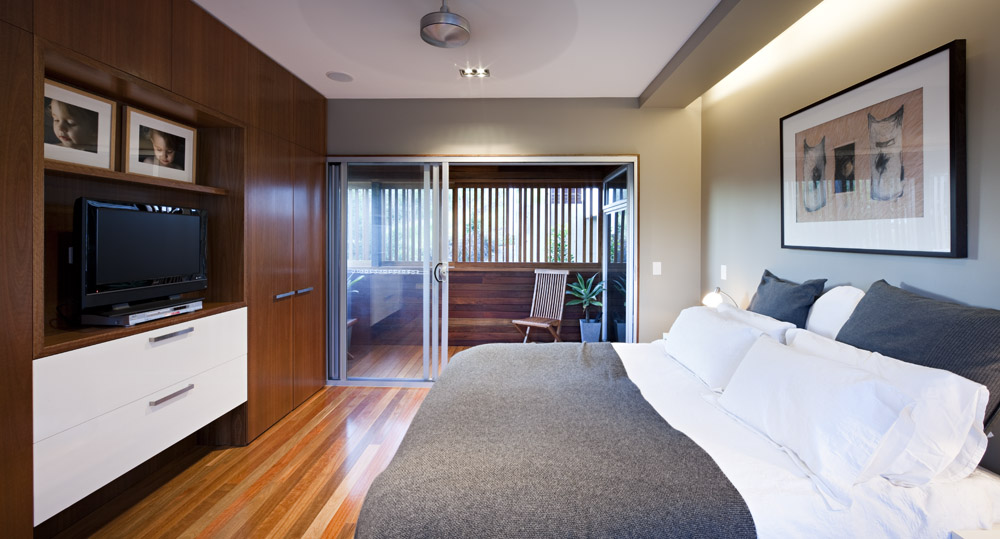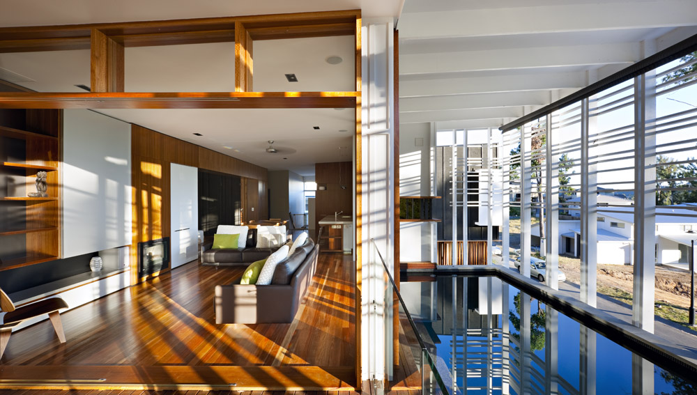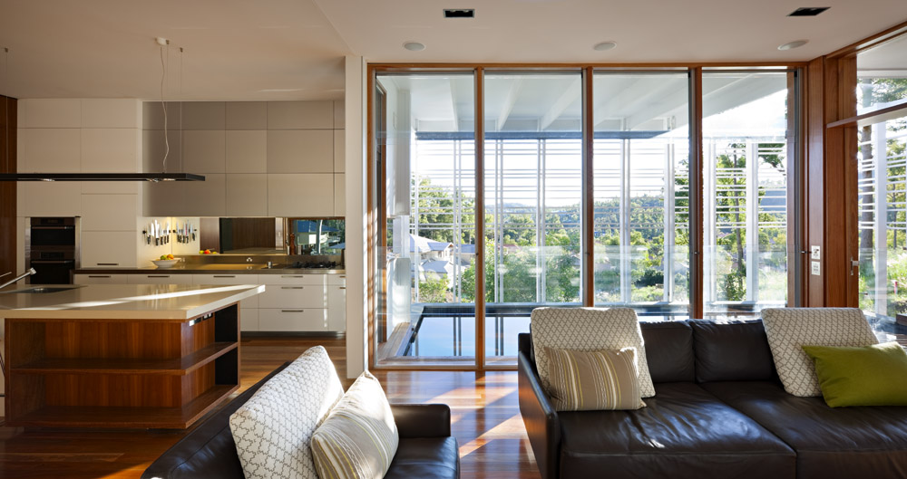 With an abundance of native timbers surrounding the house it was an easy decision to utilise this warmth internally in the form of Australian spotted gum. The timber was used for flooring, joinery and windows/doors.