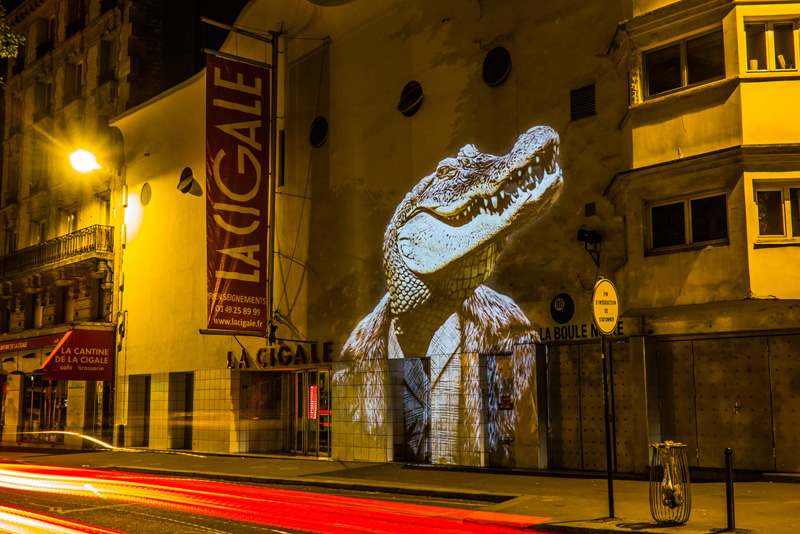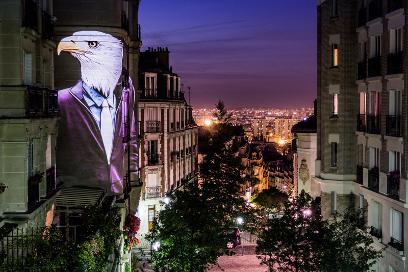 French Artist Julien Nonnon, has created “Safari Urbain,” a collection of human-like fashionista animal images that have been projected on buildings throughout Paris.