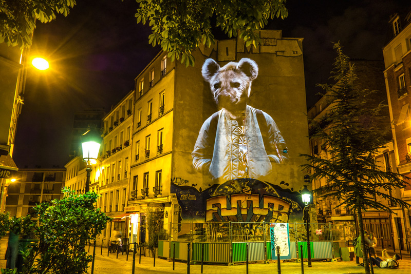 SAFARI URBAIN is in line with this approach and is born of a fierce desire to take the works to the streets, confront them directly to urban wildlife and make them reachable without degrading the walls. Leaving without a trace.