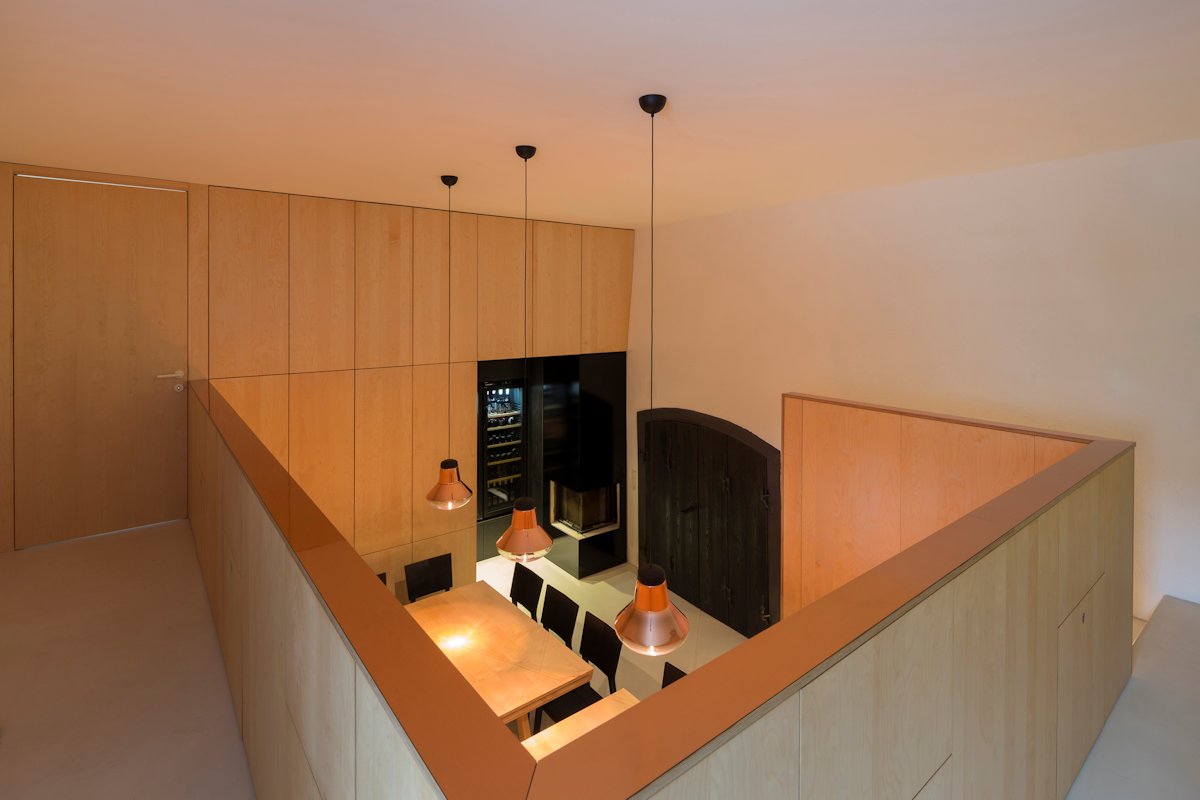The so-called storm cellar in the Lower Austrian fire Brunn is a former wine cellar. Newly remodeled, renovated and enlarged the building today extends over four levels and serves as a representative location of the Weinmanufaktur Clemens Strobl. Together with the architects Wolfgang Wimmer we have uncovered in a year-long renovation period old parts of the building and confirmed in its original and created new space : the basement storage and presentation of wines under the earth, tasting area on the ground floor, culinary and terraces on the first floor, at the top is temporary bedroom.