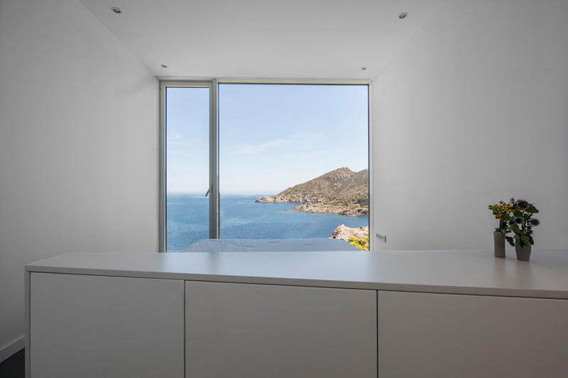 Mel and Geoff wanted a house in front of the Mediterranean sea that was fully exposed to the views; but they never imagined that their plot, beyond its closeness to the sea, was tremendously exposed to one of the strongest winds of the peninsula ( the Tramuntana, up to 180 Km/h at this point), and did almost not get any direct sun radiation. So the project starts from this dichotomy: reinforce the relation to the sea, while finding and attracting the sun into the house.