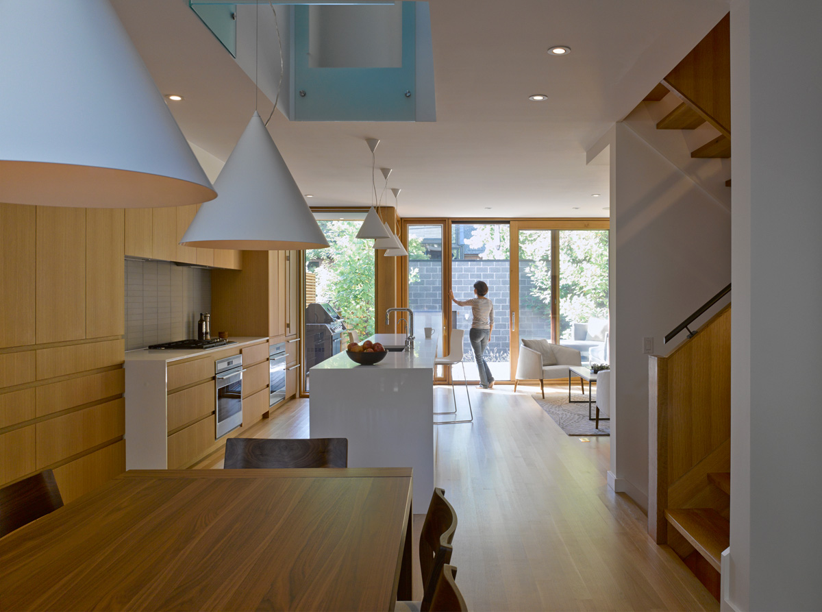 A central light well from the roof to the basement level brings light deep into the heart of the home, and creates strong spatial connections between and across the floors.