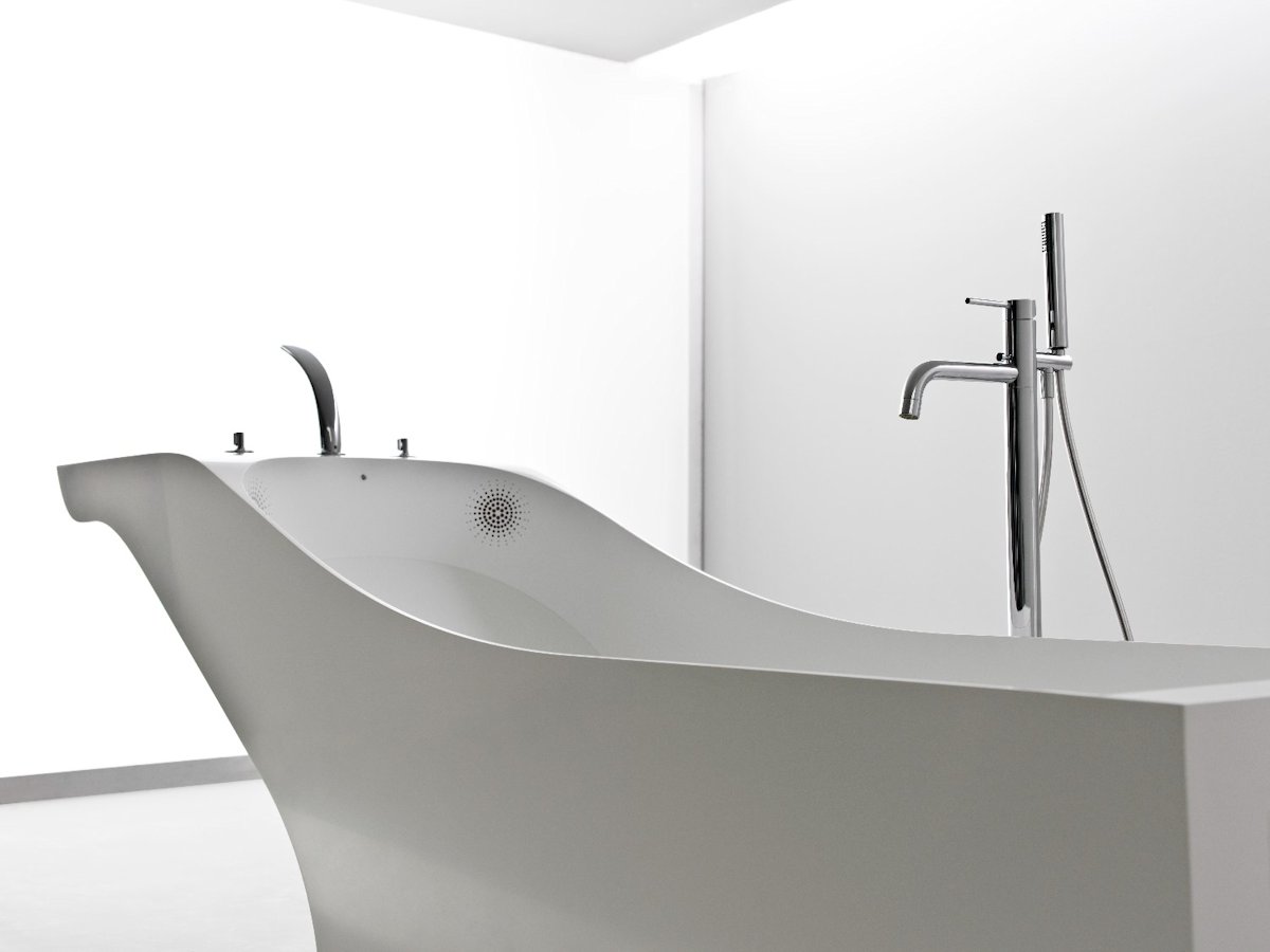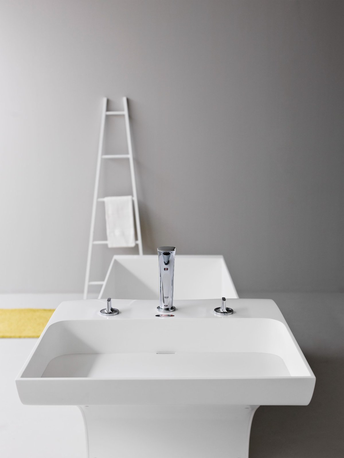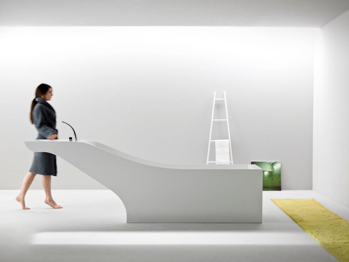 Symbiosis is the harmony of a bath and washbasin. The merger of two bathroom fixtures creates a form completely adapted to the human body. All plumbing installations are concealed from the human eye in the dual bottom, bringing to the fore the design purity of the object itself.