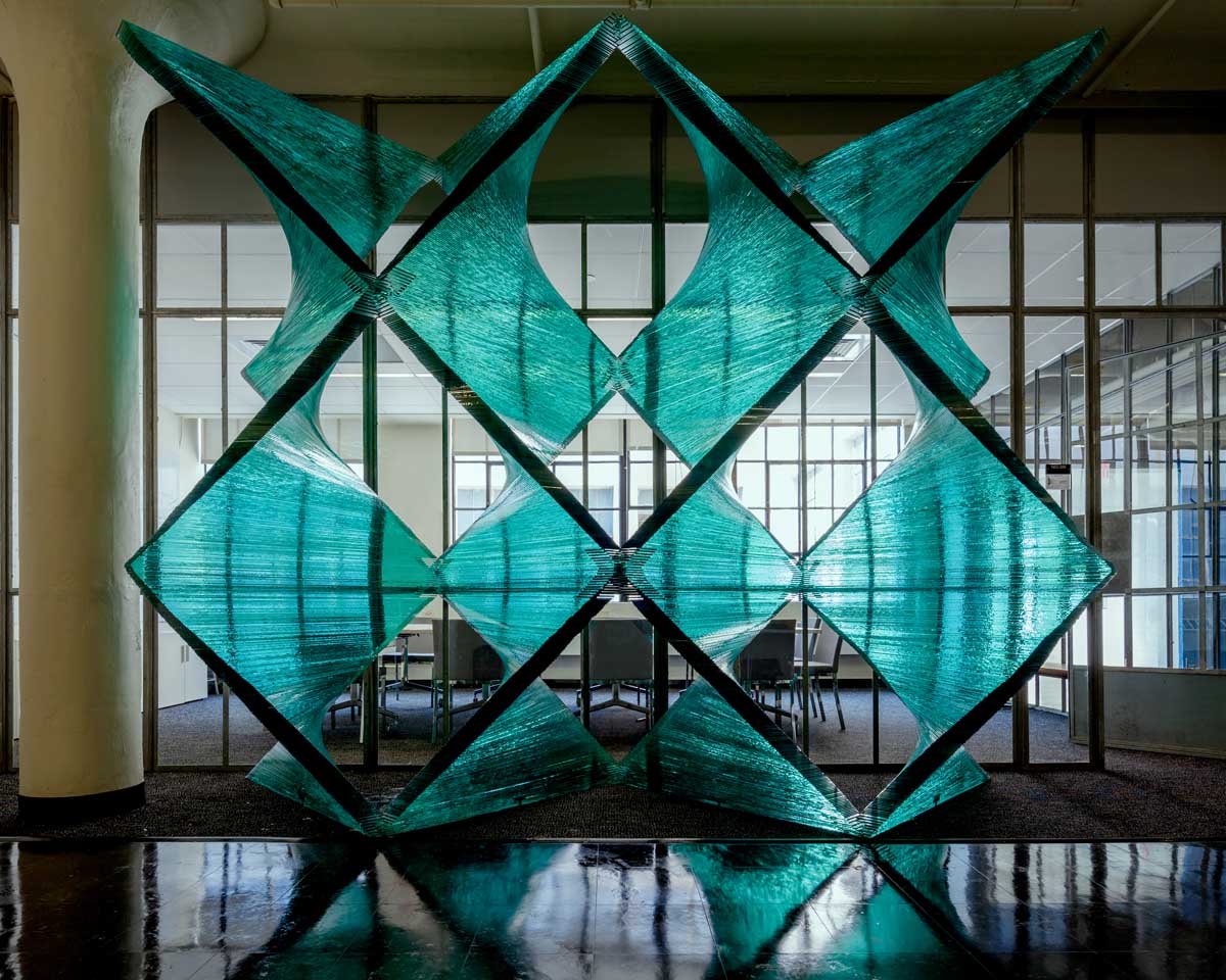 Tectonics of Transparency: “The Wall” is an undulating structure which geometry changes in appearance according to the position of the viewer.