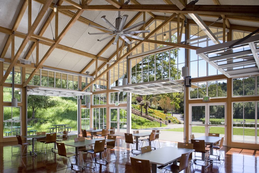 Turnbull Griffin Haesloop designed the Branson School Student Commons in Ross, California.