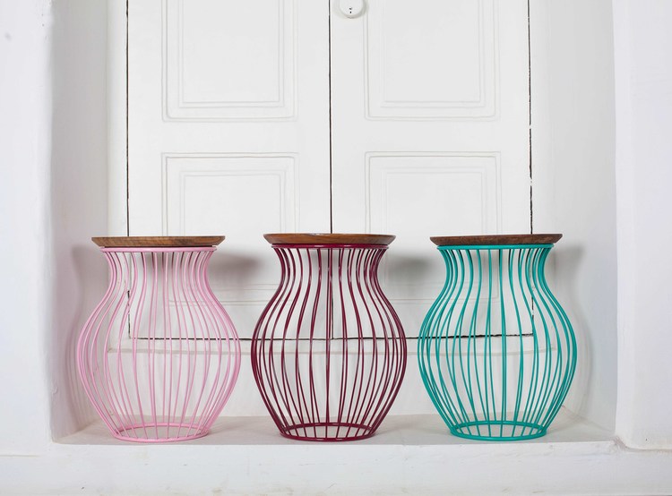 Our Handi Man side table is handmade from mild steel and available in a bunch of funky colours. It comes with a solid teakwood top that is removable so you can use it as a serving platter, from kitchen to table!