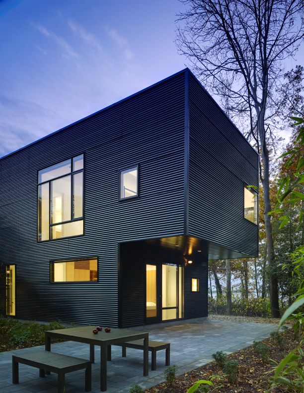 This house is designed in strong counterpoint to many of the houses built in the last era of abundant resources, expensive materials, and limitless floor area. The house is not large; it comprises three bedrooms and 2400 square feet. The house is constructed with modest materials that include concrete floors throughout the first floor, oak flooring on the second floor and plastic laminate and oak millwork.