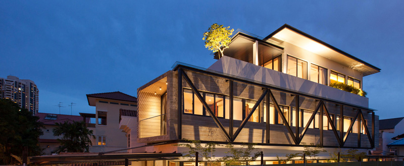 Aamer Architects have designed the ‘Railway House’, a semi-detached home in Singapore.