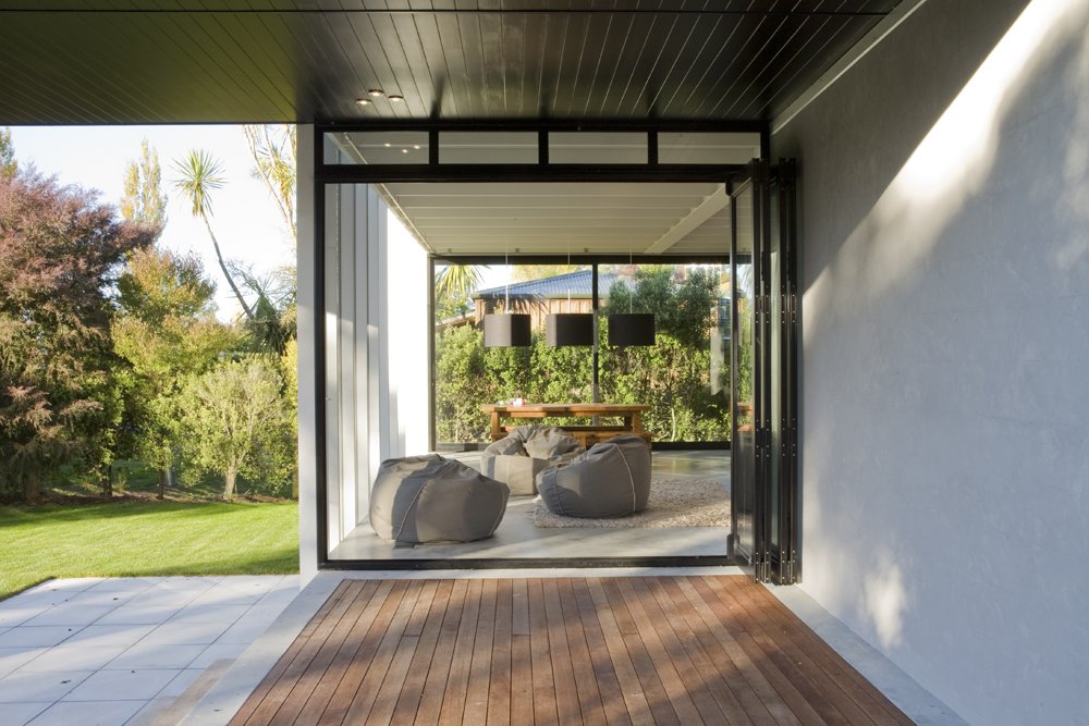 The brief was to create a modern holiday house suitable for the hot summers of Lake Taupo and the cold winters for skiing on Mt Ruapehu.