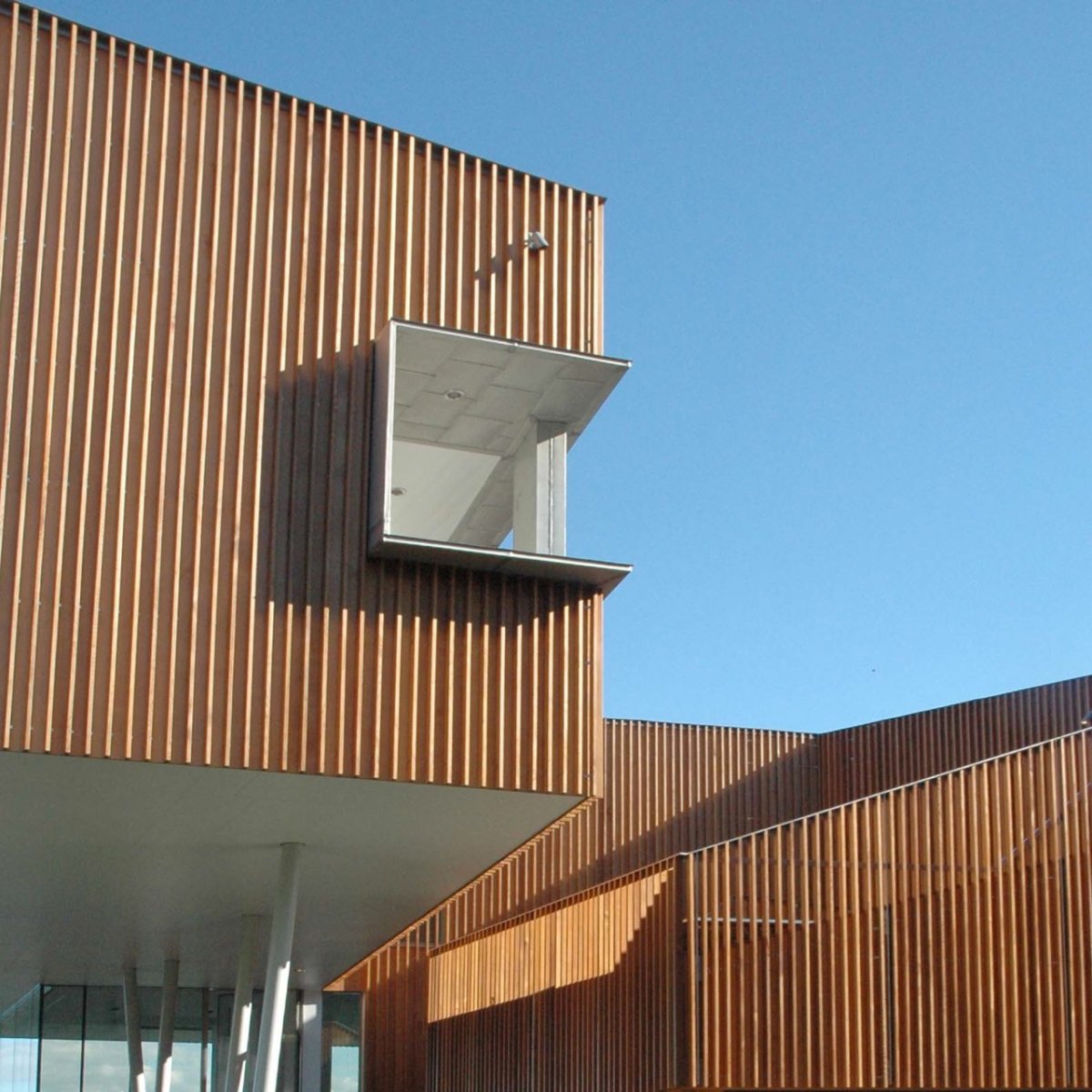Projective geometries render the site as pure landscape; that is, as an expanse of scenery that can be viewed from a single point. The radial geometry at work in the house, tied to notions of water, waves, and sea, creates the spiraling form that relates social spaces to private spaces and seamlessly adjoins interior with exterior.