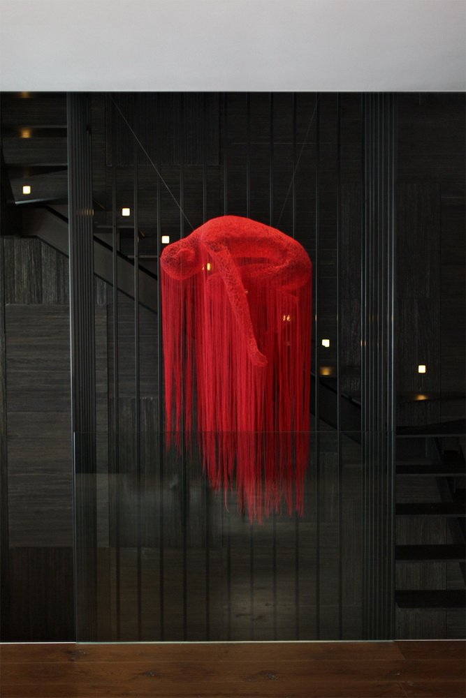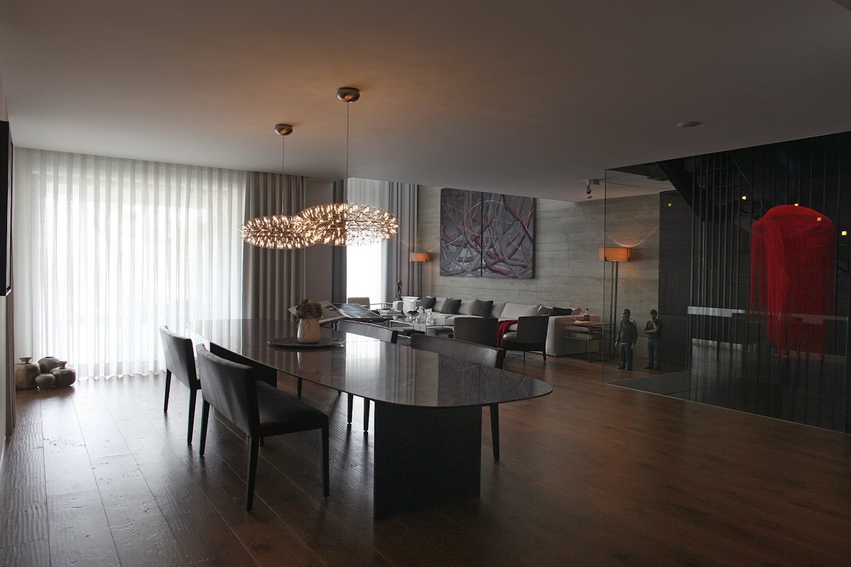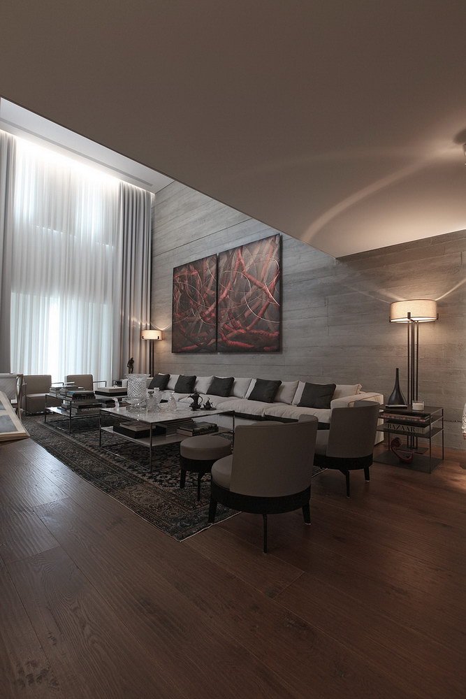 The T House, by Istanbul based designer Tanju Özelgin, is a multi-level private residential interior in Istanbul’s Bosphorus district. Objective of the project is to create a modern space by combining local forms and materials. As in many of Özelgin’s other interiors, The T House exhibits a level of style and taste rare in design in Turkey.