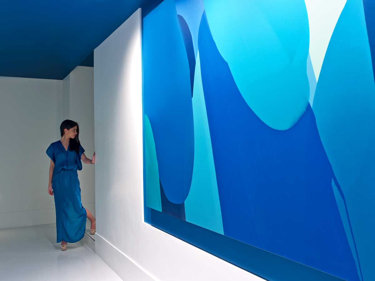 Our primary goal was to make the boundaries of “the art” and “the room” indistinguishable. The experience begins in the corridors where the colors of the paintings insinuate themselves onto the ceilings and walls. In the guest rooms color is layered on planes, niches and floating walls. Conceptually speaking the paint has been delaminated from the canvas and used to create space from color. Coaxed from “chromatic black”, color emerges onto the room’s surfaces, bed linens, carpets, and furniture in varying degrees of vibrancy and saturation. By avoiding the aesthetics of minimalism and good taste, and exploring color like painters, our secondary goal was to reach past fashion and personal likes and into the depths of what unapologetic color can mean. Staging fresh juxtapositions, sometimes complimentary and other times dissonant, invites an emotional response and is a kind of theater. This color is not decorative. It is visceral and fully immersive.PROCESS