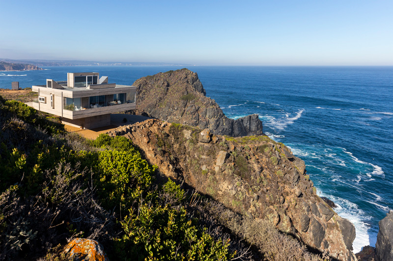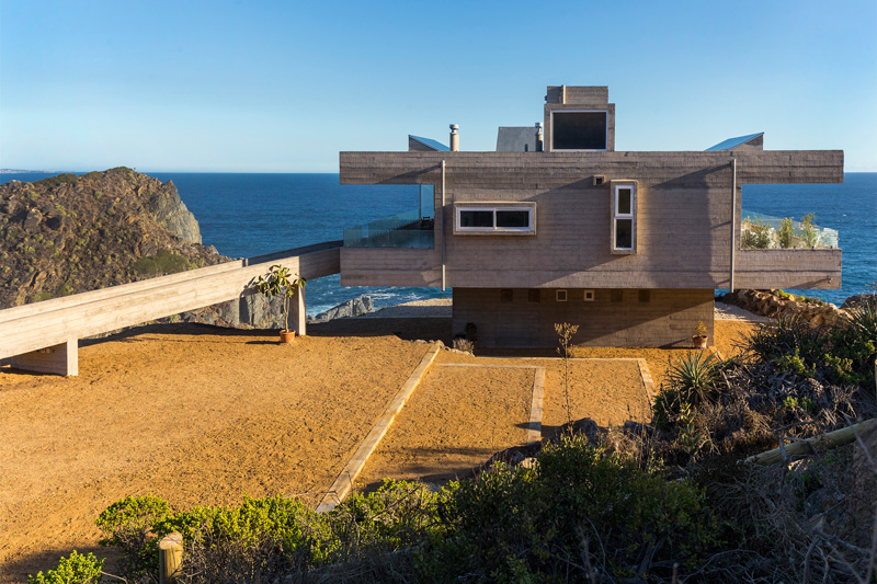 Gubbins Arquitectos have designed the Mirador House in Tunquén, Chile, where it is perched above a steep cliff with views of the ocean.