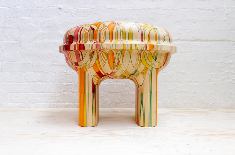 Blocks dyed different pigments are then glued together with the grains facing vertically to create three-dimensional patterns – then shaped with a computer numerically controlled (CNC) machine. ‘Endgrain’ is therefore a process that starts very crafty and ends quite industrial.