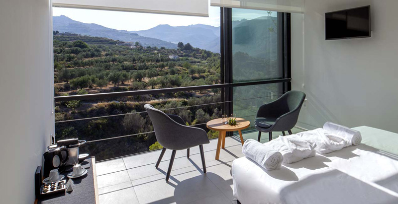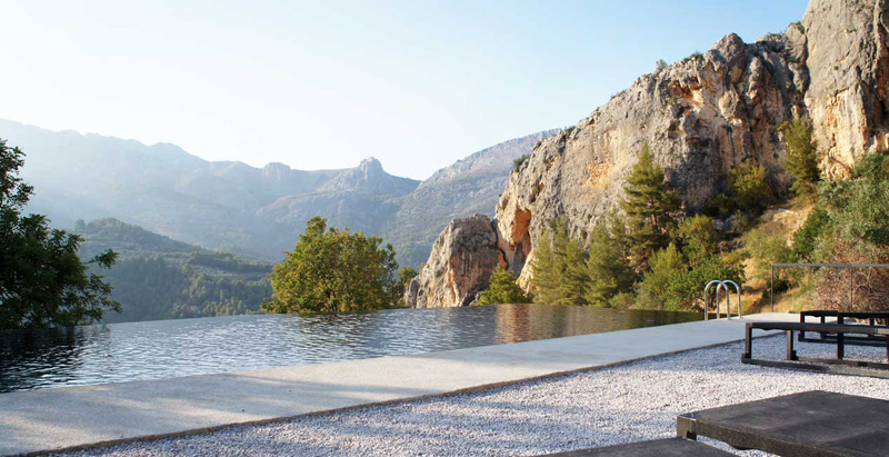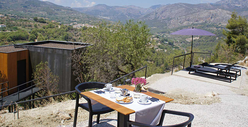 The Vivood Landscape Hotel, is an adults-only hotel with 25 little buildings that have picturesque views of the Guadalest Valley in Spain.