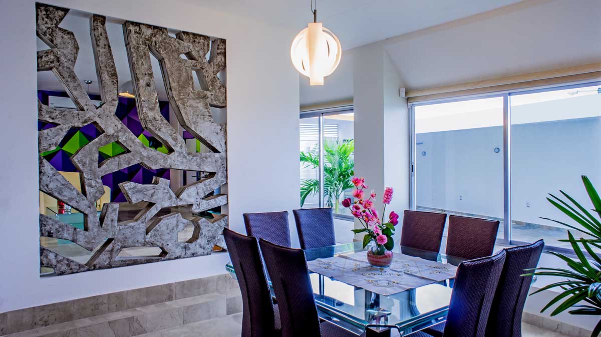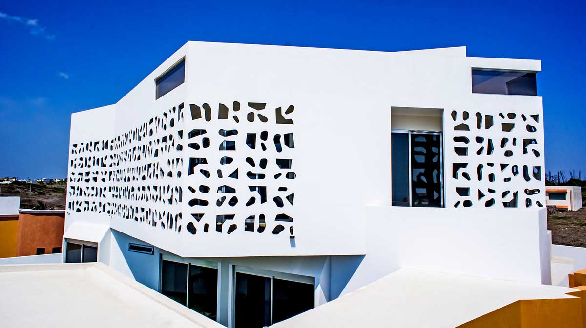 The sun and the wind were important factors to consider during the design process because Veracruz is a very windy city. The facade of the second floor is wrapped with a screen of perforated concrete that flows with the form of the house that acts as a filter, ensuring the occupants privacy and safety also helps to reduce the wind and the heat gain.