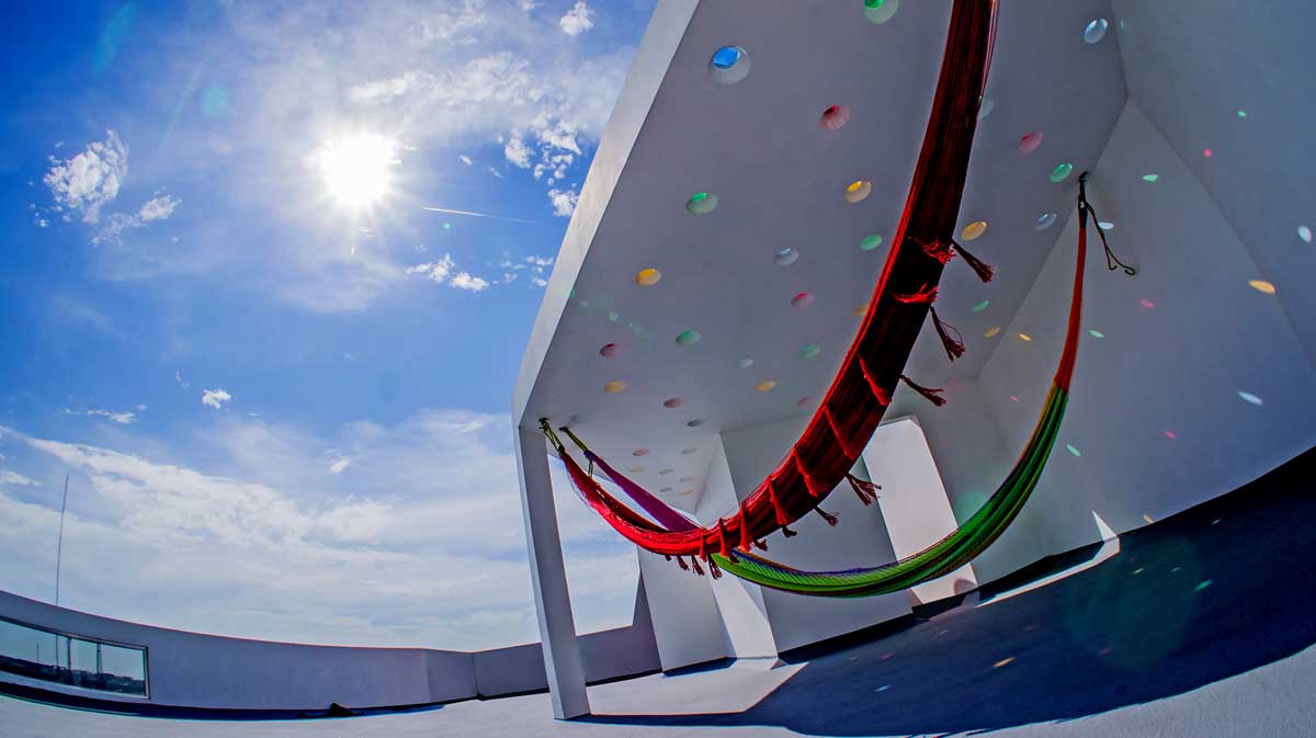 The owners are hammock lovers, so we designed a rooftop terrace with a special covered area for hammocks, the holes of the roof are not just for aesthetics but also were made by the shape of “pumpos” a typical fruit of Chiapas, so when the family enjoy the hammocks could remember a bit of its culture.