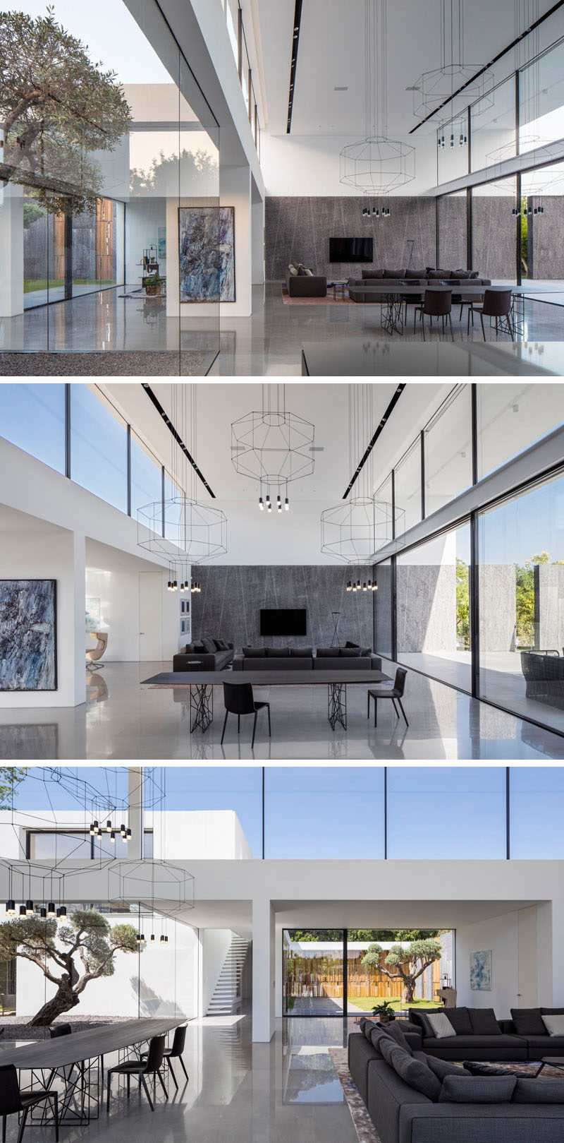 Pitsou Kedem Architects have designed a home in Savyon, Israel, that’s minimalist and transparent in its form and materials.