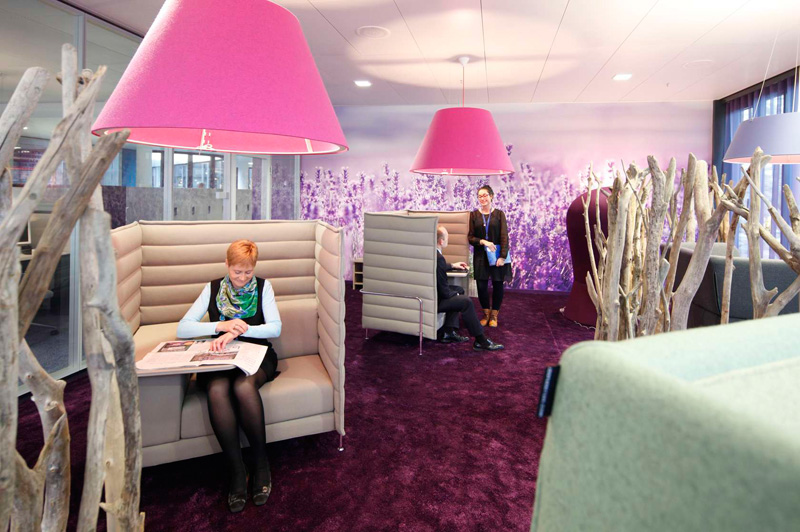 The biggest challenge was the change from a traditional workspace with dedicated desks to a completely new activity-based style of working. Thus, the building was divided into‚ Homezones and Meet & Create Zones.