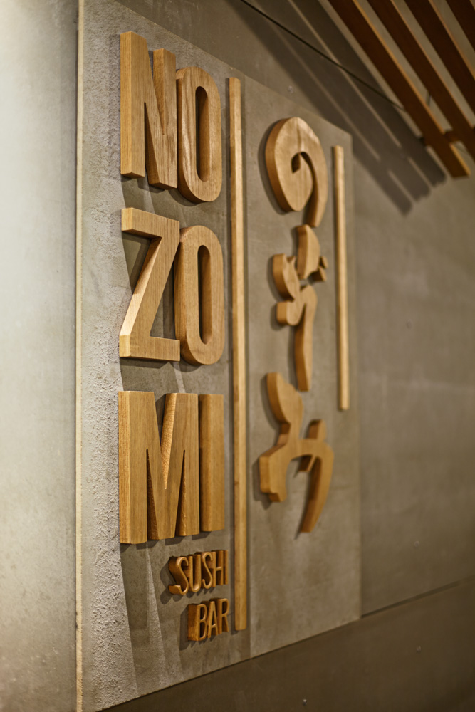 Briefing: Design the brand and interior for Nozomi Sushi Bar, a restaurant specialized in traditional sushi.