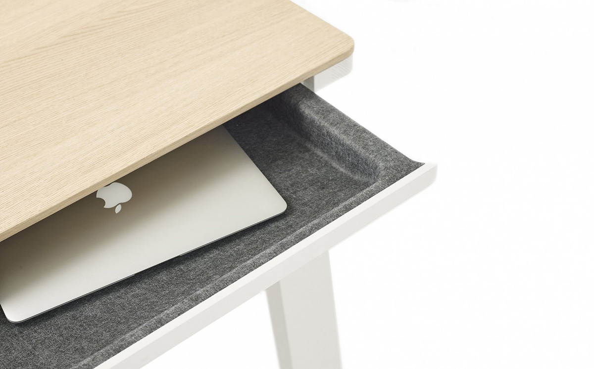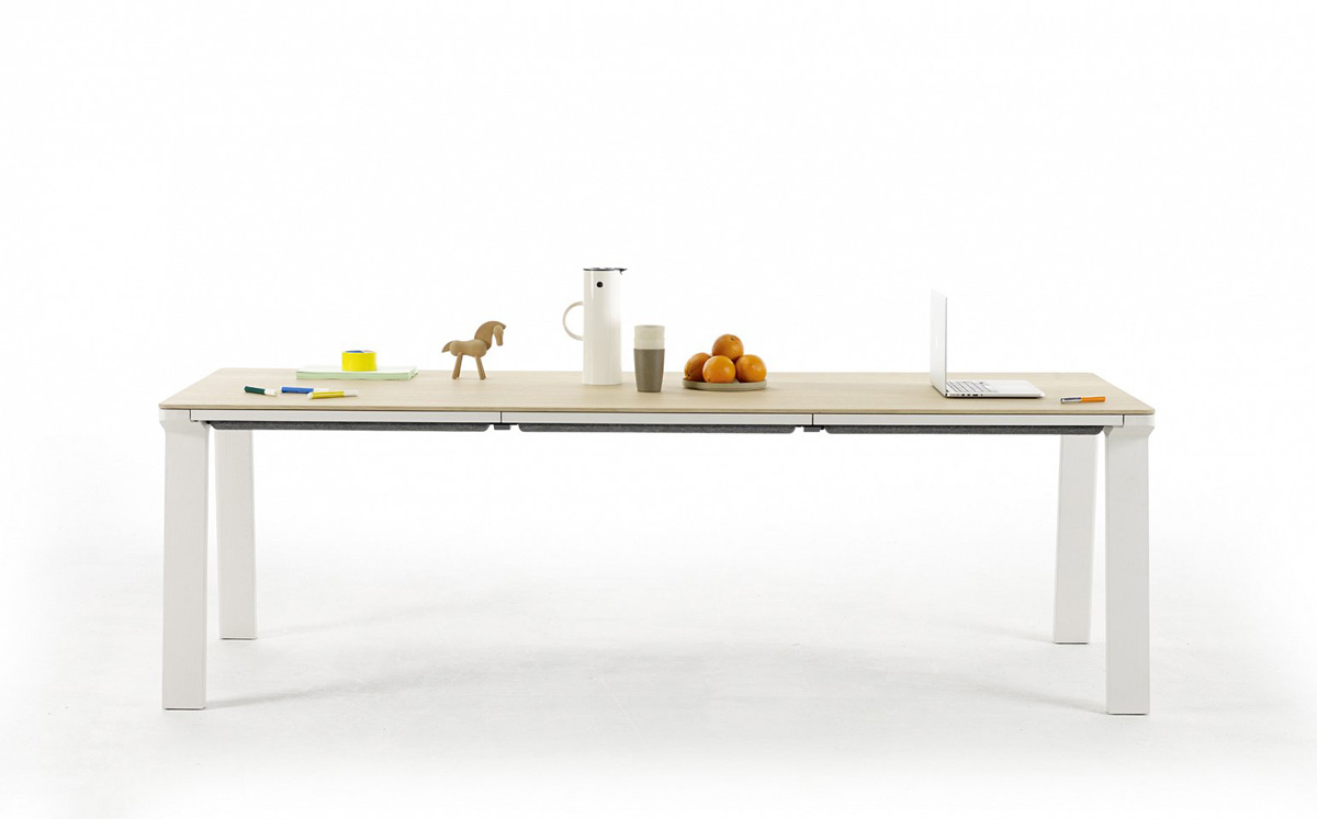 Tables in particular have to be multi-talented; they not only have to be a traditional kitchen table but a desk, work bench, meeting place and dining table as well… and some¬times all at the same time. The Drawer table is one of those all-rounders.