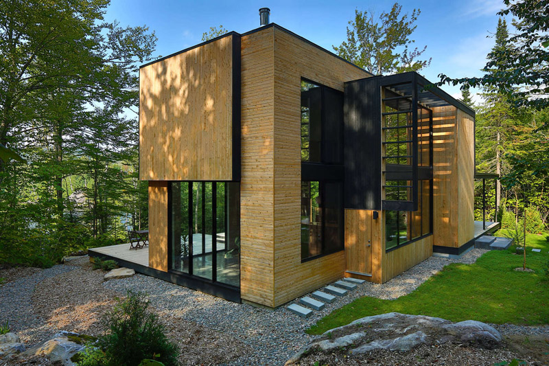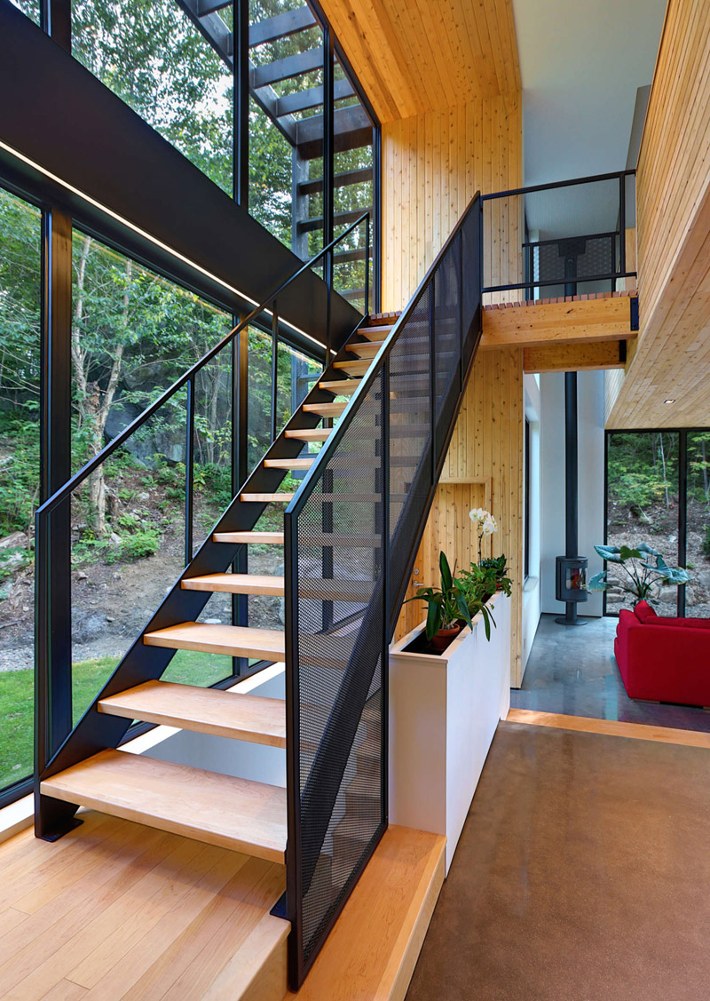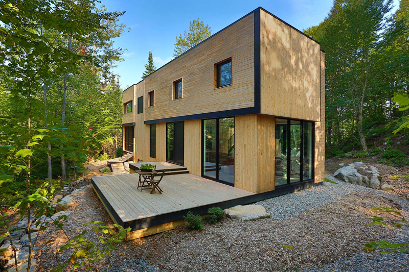 Thellend Fortin Architects designed this home surrounded by the Laurentian forest near Montreal, Canada.