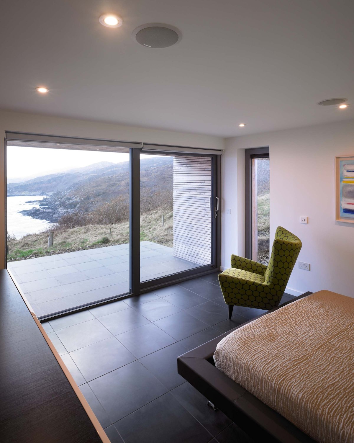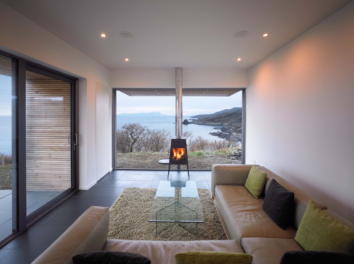 The clients had been visiting Skye with their dogs for many years. They love the landscape and positively enjoy the unpredictable weather and choose to eat outdoors in all seasons. They brought to us photographs of their main home in Lancashire which is simple and minimal, a CD of their favourite music and the encouragement to do something different.