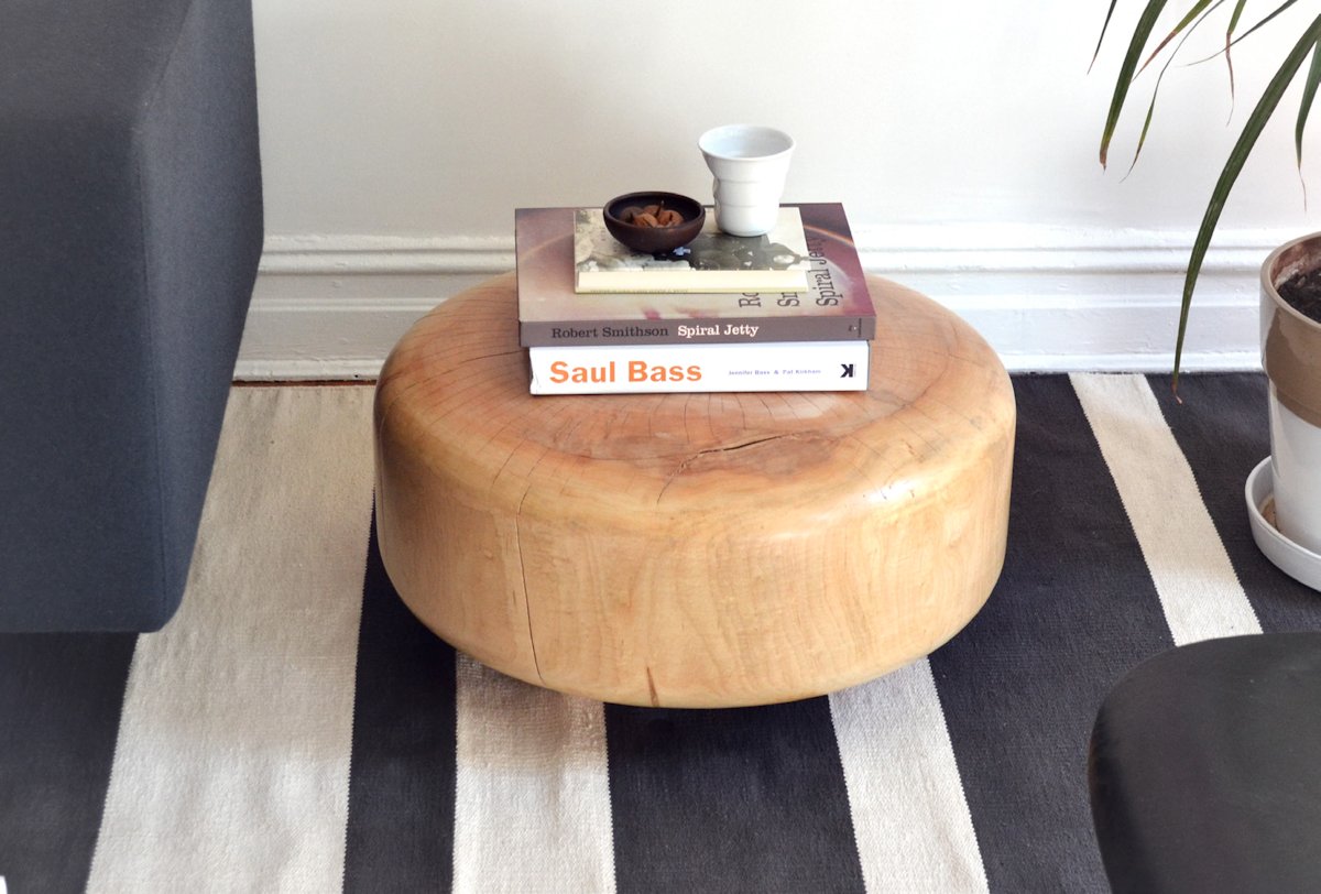 We were interested in designing a collection of objects that could stand alone individually or work as a cluster. With their varying sizes, they take on the character of a family as well as conjuring a trace of the logs where they come from. We’ve designed different sizes for different functions: low table, stool, coffee table, bookstand, and sculptural object.
