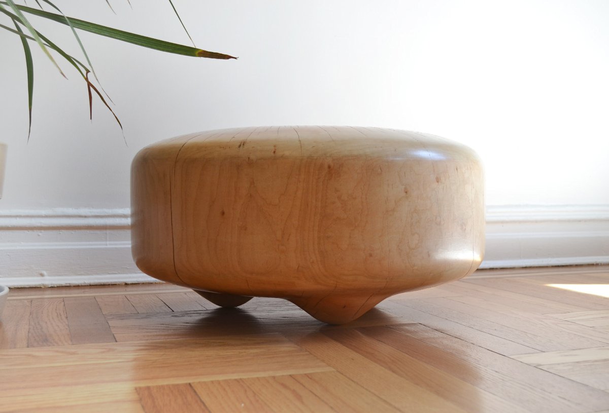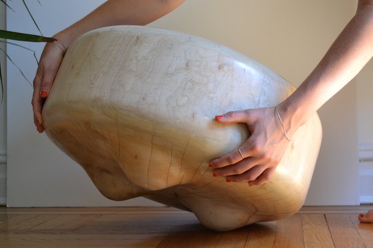 Inspired by the huge logs we saw in Ithaca, we started sketching out ideas for turning them into pieces of furniture or objects. We liked the idea of producing an object that took advantage of the size of the log. This led us to designing a family of versatile stools that could be crafted out of sections of the logs–so that we can work with any available wood. We were interested in showcasing the natural beauty of the silver maple while at the same time making a unique designed object. We chose silver maple because we loved its color, grain, and the fact that around Ithaca, it is considered an invasive plant-which means the arborist gets plenty.