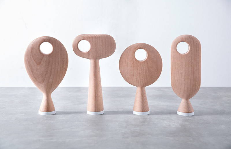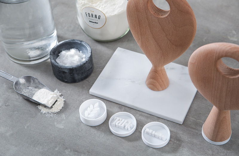 We have tried to reinterpret the symbolism and historical meaning of the Bread Stamp, by redesigning this ancient instrument using contemporary technology. The collection of Bread Stamps consists of four Beech wood handles, milled on a CNC machine and a 3D printed extruded head.