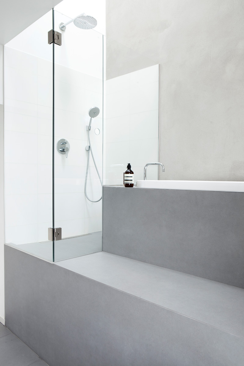 Bathroom: The bathroom incorporated several level changes, and by using large scale 100x300cm tiles, the impression is of one that is carved out of a single block of stone.