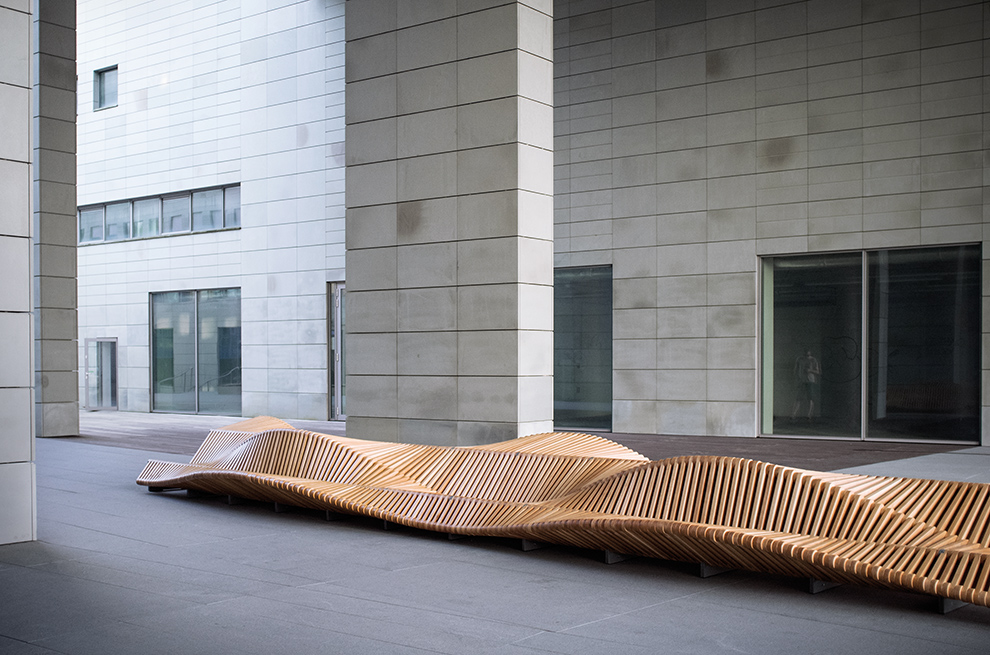 The bench is not intended to be used only by students – although one can read and relax on it during breaks from intellectual work – but meant to be a meeting and resting spot for all who appreciate good design and are open to new, inspiring solutions.