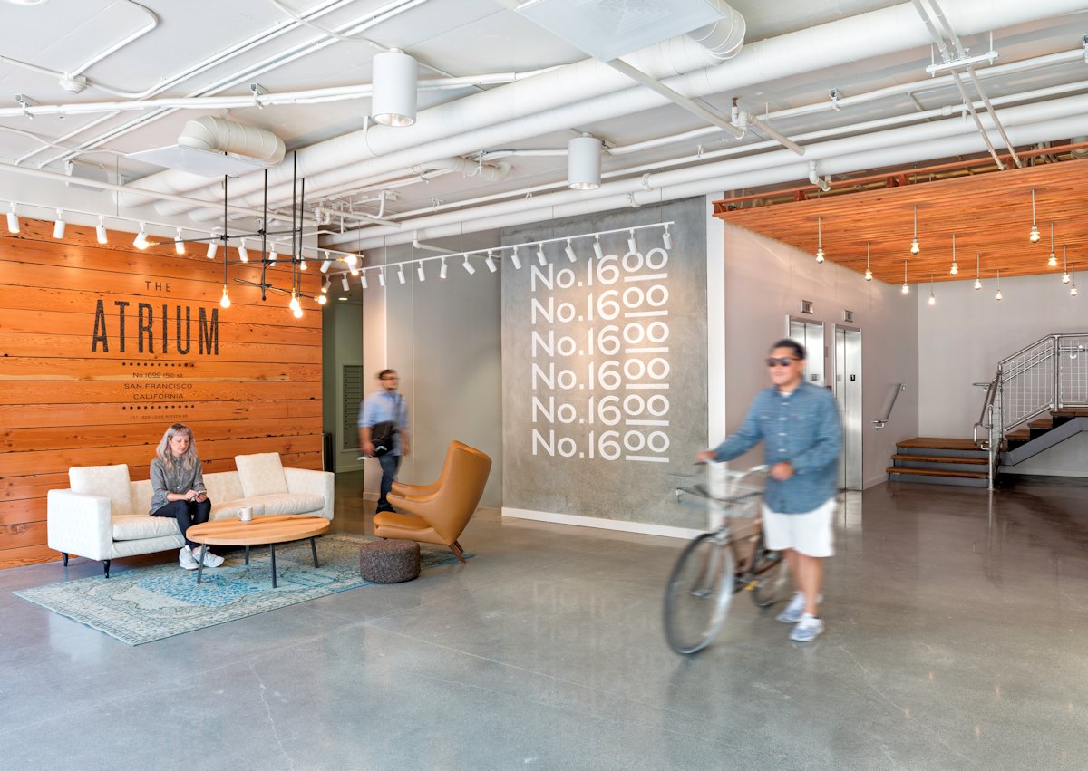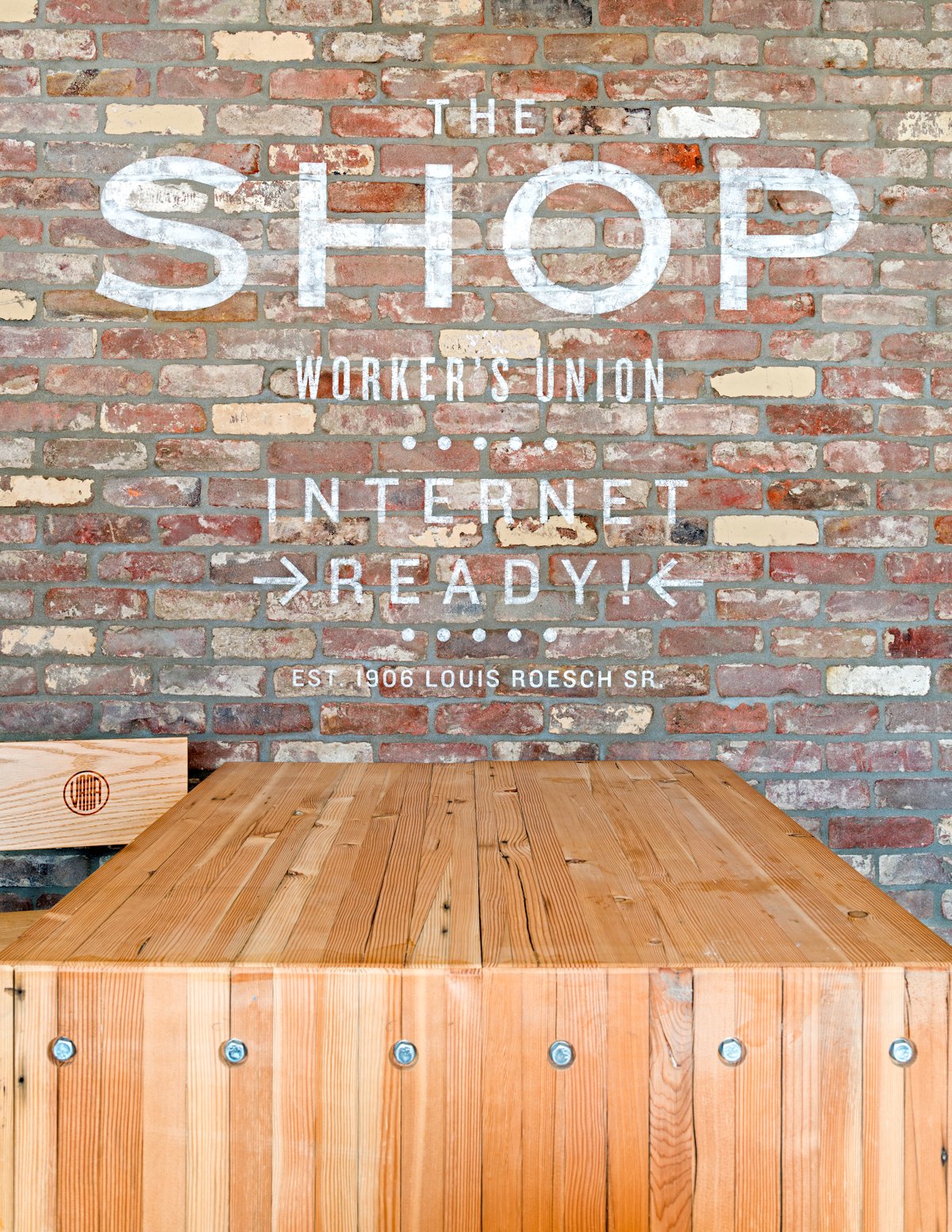 For decades the building on this site was a print shop famous for producing the fruit and vegetable box labels used by growers to ship their products. The colorful folk-art of those labels—and the rustic traditions of agriculture in California—provided inspiration for O+A’s branding of the lobby, bar, gym, tech shop and courtyard. Some of the wood from the original building was recovered and re-purposed to accent the finishes of the public areas—a continuity that illustrates the increasingly important aesthetic of employing historic contexts to define contemporary spaces.