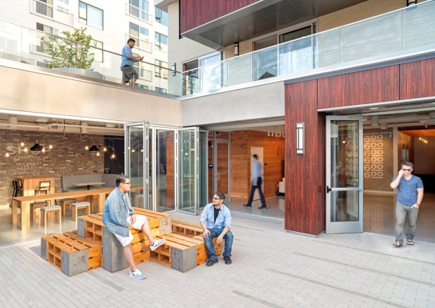 With San Francisco securing its place as one of the world’s technological hubs once-industrial areas of the city are turning into digital foundries. Unlike the industrial areas of old these foundries attract people who want to live nearby. Vara, the new housing development at 1880 Mission is a living space for urban professionals who may walk to work, work from home, work in a café—or all three.