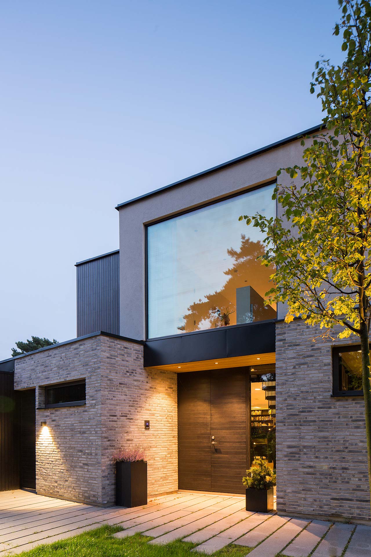The load-bearing structure is constructed of wood and steel with a concrete intermediary floor slab. The façades are clad with Danish brick, light grey render, stained pine and black aluminium. The windows are manufactured by Schüco, and the doors are custom-made by Snickerbolaget.